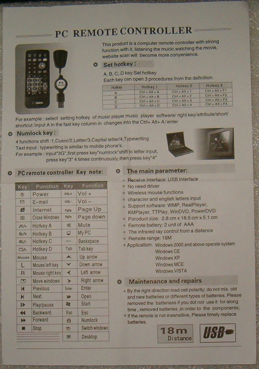 Item 109-1 : $29.95 PC remote control and PC remote control eye. Remote #1: